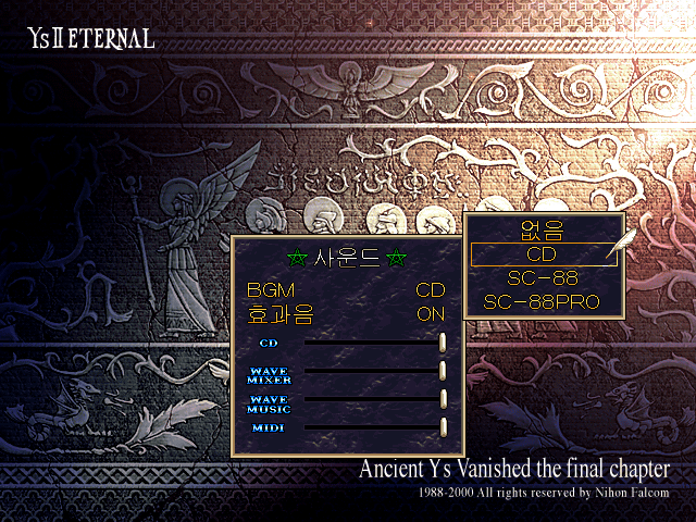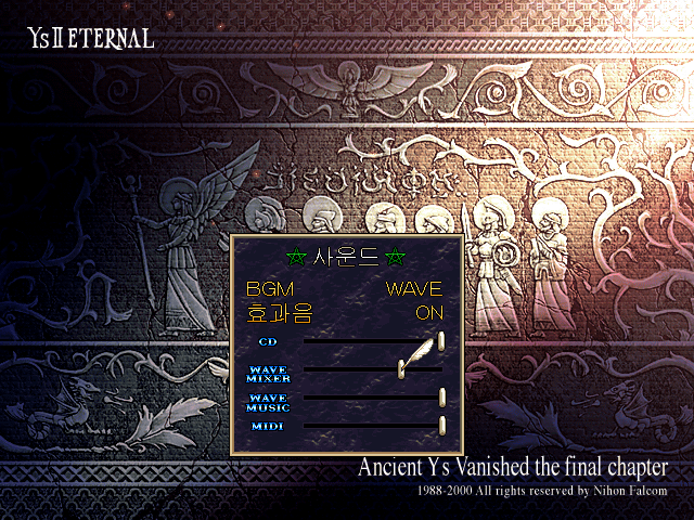 각각의 장단점이 있지만 윈도우 비스타 이후로는 CD-DA를 사용하는 고전 게임 즐기기가 영 불편해졌습니다. 그래서 이스 2 이터널 한글판의 BGM을 일본 DVD판처럼 WAV 파일로 재생하기 위해 조금 수정해봤습니다.