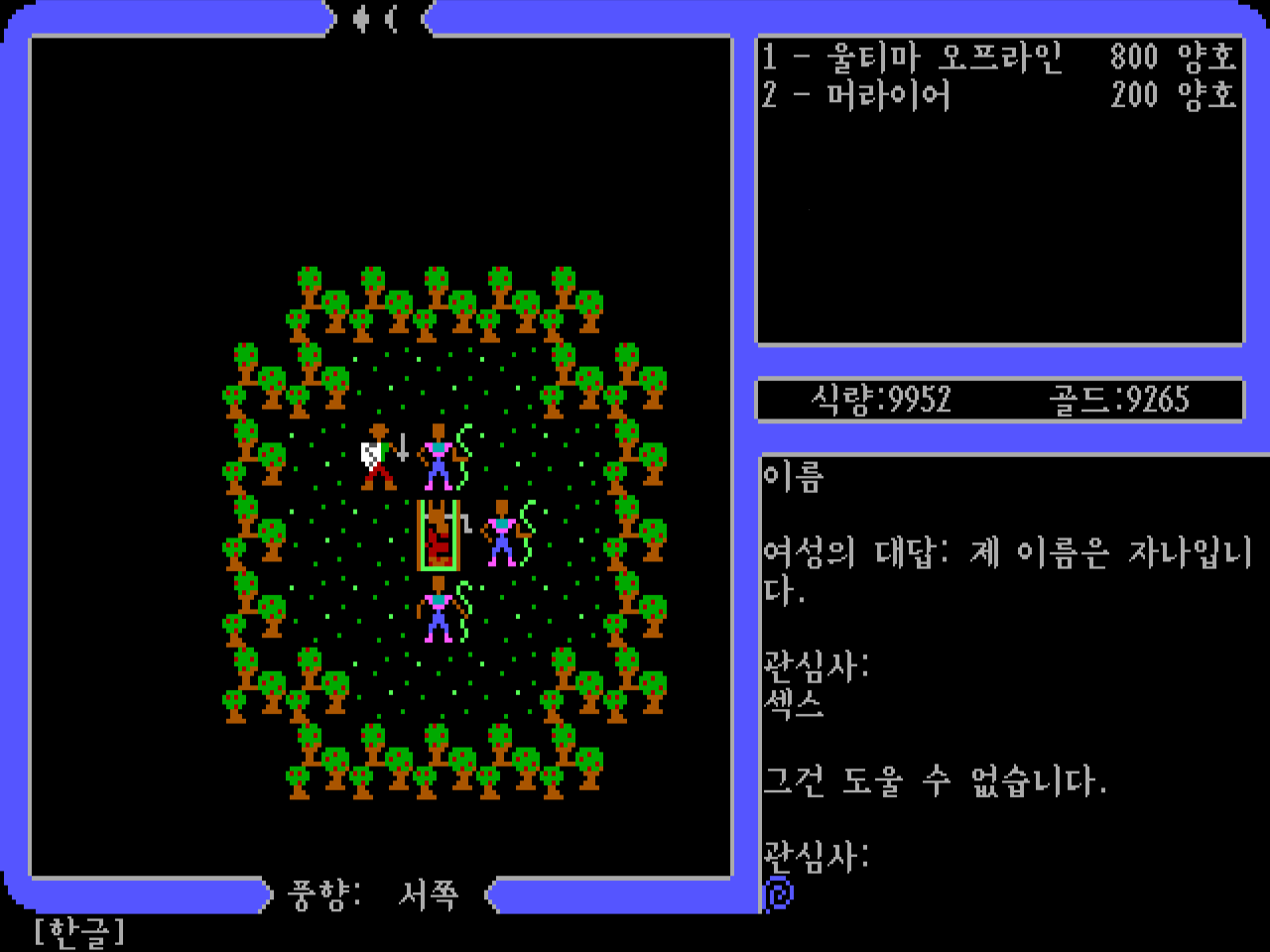 한국어 대사와 한글 키워드 입력을 완벽 지원합니다. 이제 울티마 IV 게임성의 핵심인 NPC와의 대화를 자연스러운 한국어 문답을 통해 진행할 수 있습니다.