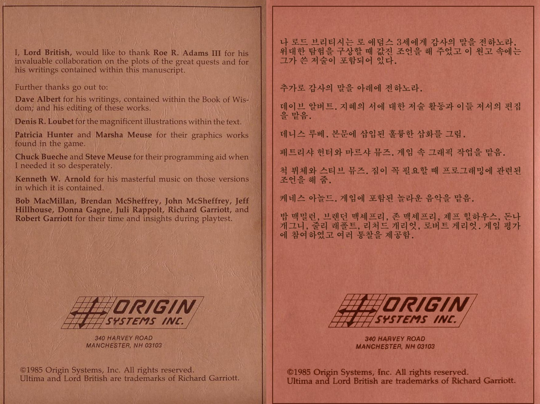 그렇다면 8대 미덕에 대한 개념이 누구에게서 나왔냐가 관건일 텐데, 당사자들의 주장과 정황만 있을 뿐 명확한 증거는 없는 게 사실이라, 기존에 알려진 것처럼 개리엇이 설계하고 Roe가 조언을 준 것인지 아니면 전적으로 Roe가 만들어낸 것인지 판단하는 건 여러분의 몫일 것 같습니다.